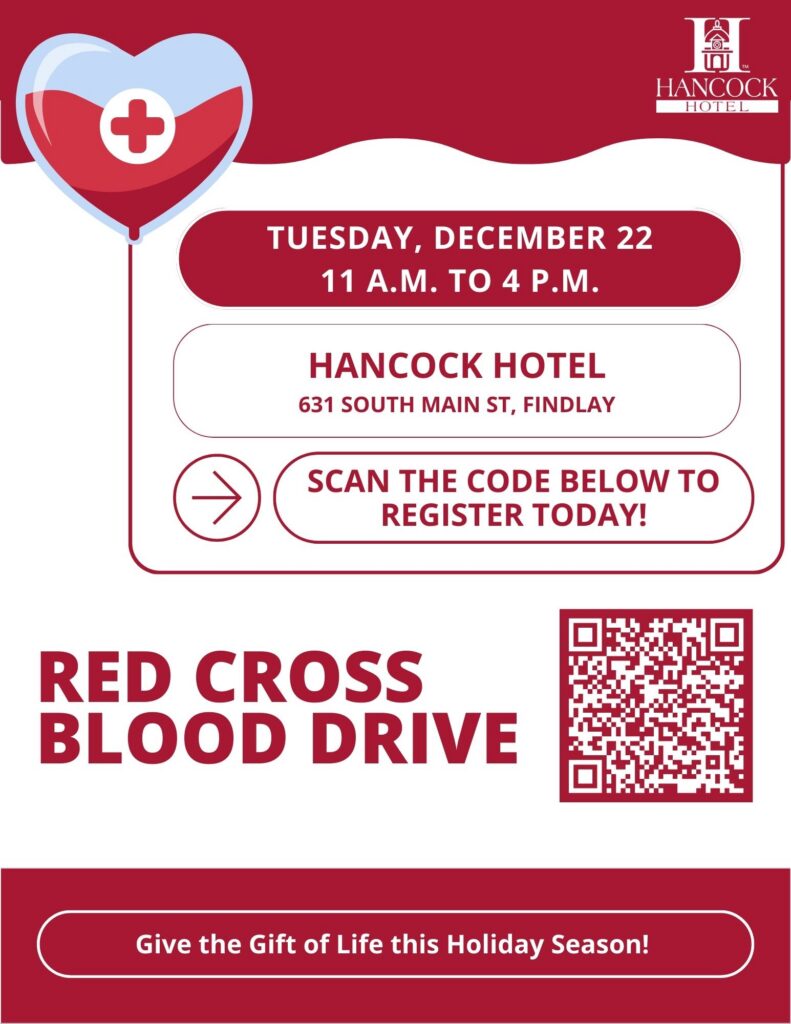The Red Cross Blood Drive is returning to Hancock Hotel for the final time this year!