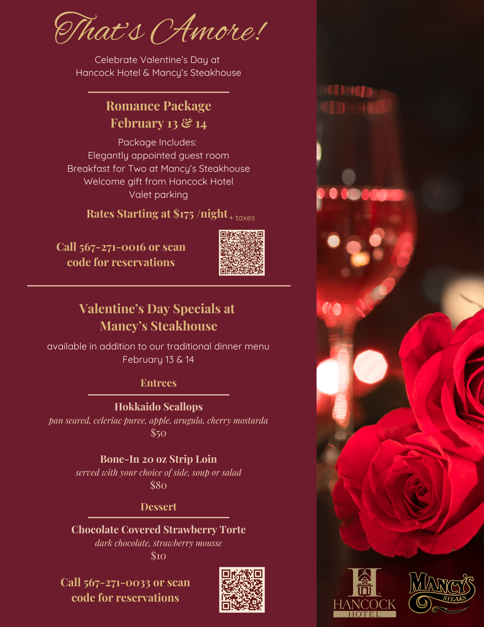 Valentine’s Day at Hancock Hotel & Mancy’s Steakhouse